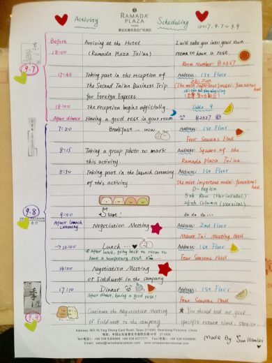 乐鱼(中国)官方志愿者孙万磊根据活动流程安排,提前制作英文版时间安排表及专家Henrik的迎接牌,以便专家清晰了解活动流程,仔细而贴心。她全程时刻保持高昂的精神状态,面对突发情况也能临场反应、积极应对,并及时反思自己处理问题时的态度,注重英文翻译过程中的精准度,沉浸在英文翻译的氛围中。