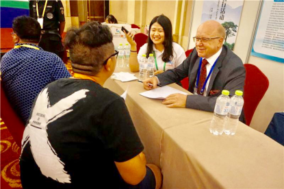 启动仪式完成后,各地企业单位与外国专家开展现场洽谈,志愿者积极引领专家进入单位进行实地考察指导。学院志愿者分别针对化工、自动化、农林业、畜牧养殖、医院管理、信息技术和新材料能源等不同专业领域的90名专家进行翻译准备,摸排专业术语,避免交流障碍。