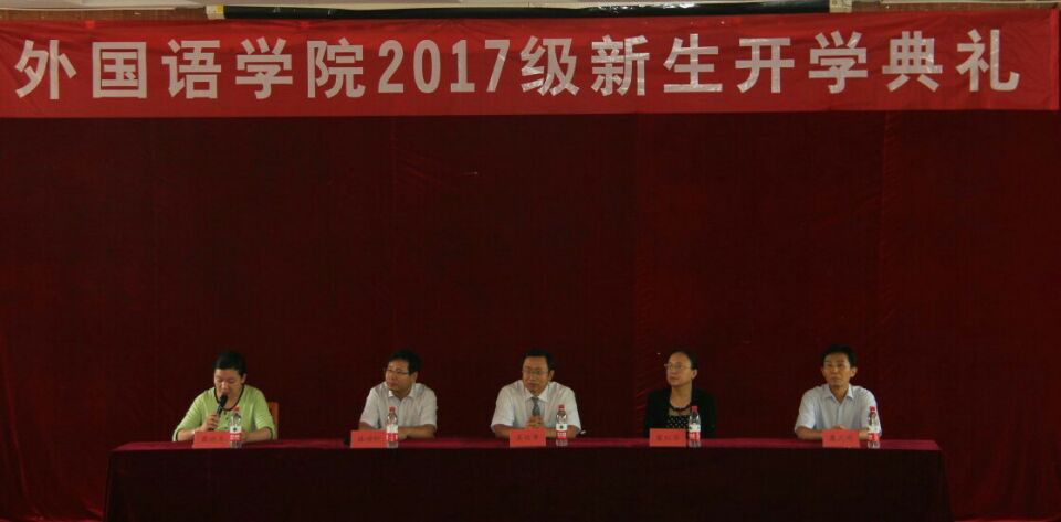 院长石运章代表全院师生向2017级新生表示热烈欢迎。他分别从学院教学资源、科研硕果、优秀典型等方面向新生们介绍学院发展情况。随后,他指出语言的学习会遭受挫折与磨炼,但“绝技乃有苦练成”,鼓励新生要有勇气、有担当,并不断磨练自己的意志、耐心和品格。最后他强调,“有目标、懂方法、能吃苦、肯坚持”是成功的筹码,建议新生在传统学习的基础上加强创新,争当创新型、专业型、复合型人才,成为当今社会所需要的外语人才。石院长幽默而精彩的讲话赢得了学生们的热烈掌声。