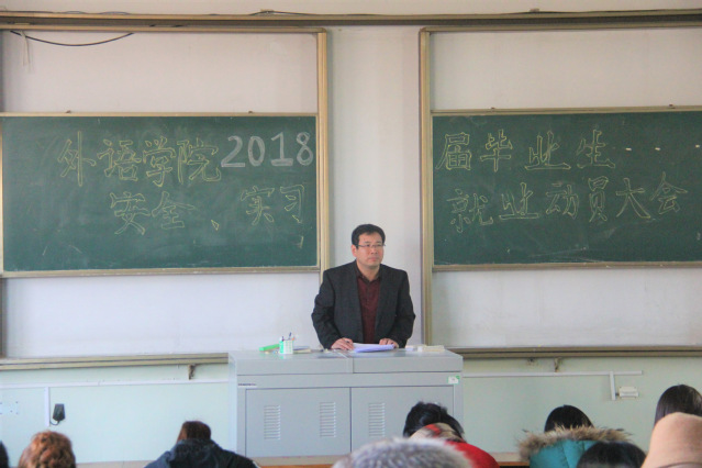 学院副院长林啸轩发表就业动员讲话,他指出就业应做到“集中与分散相结合”,给予2018届毕业生全面详尽的就业实习指导。随后,辅导员李娜重点强调毕业生就业实习安全问题。党委副书记孙慧敏给予2018届毕业生充分肯定,向大家提出希望和要求,勉励毕业生通过实践巩固专业理论知识,及早适应新环境,以此达到最大程度就业,最后表达祝愿,希望全体毕业生卯足力气、敢于攀登,向理想目标迈进。