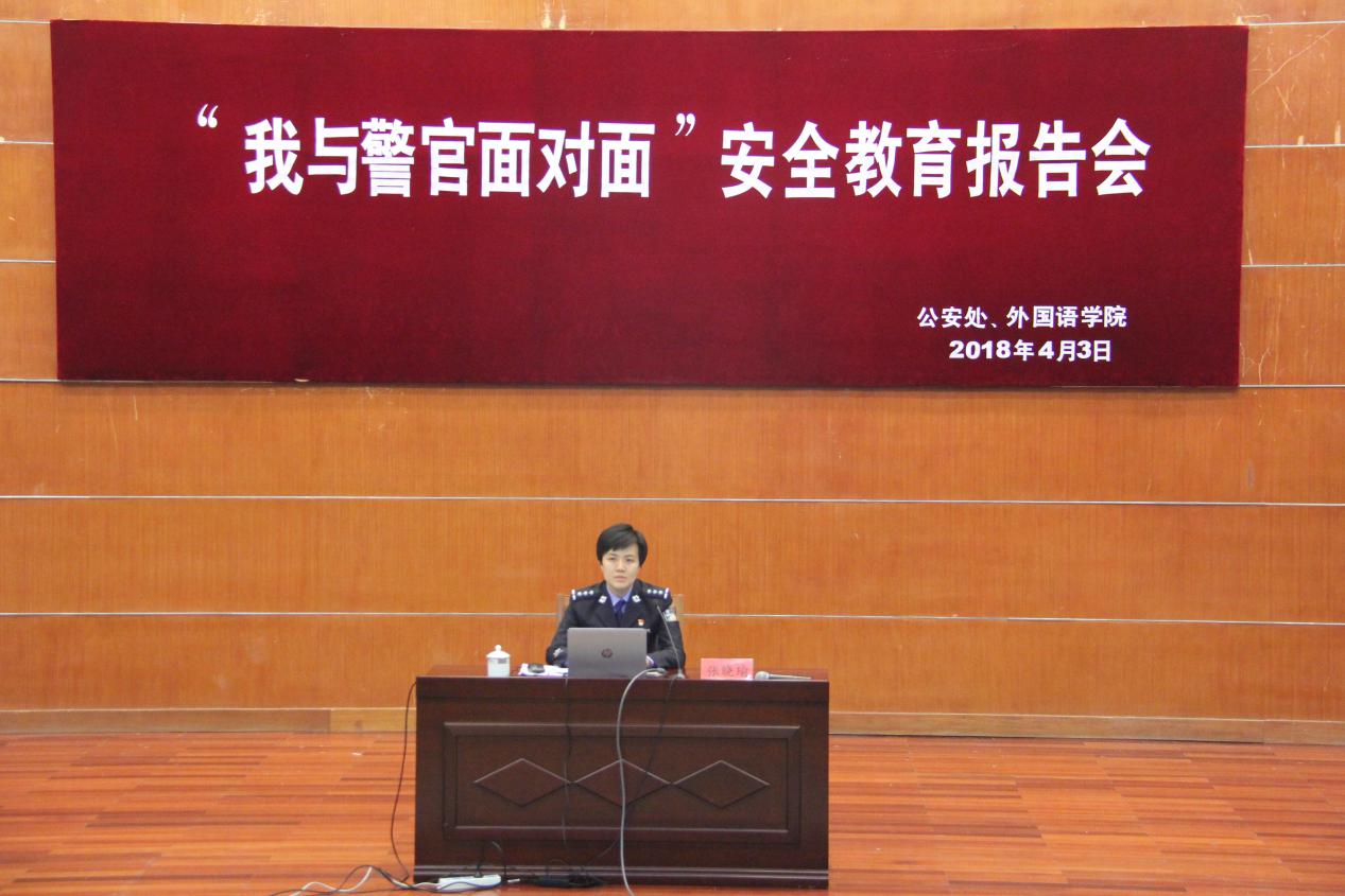4月3日,乐鱼(中国)官方特邀泰安市公安局特巡警支队张晓瑜警官于北校区文理大楼报告厅召开“我与警官面对面”安全教育报告会。学校公安处相关老师、外语学院辅导员及2016级、2017级全体学生参加报告会。