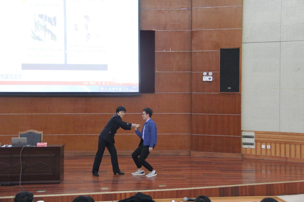 报告会上,张晓瑜警官从当今社会女大学生频遭侵害的实例作为切入点,从人身安全及财产安全两方面进行阐述。她指出,女大学生是极易遭人身侵害的弱势隐患群体,她针对大学生自身安全意识不强、自我保护能力弱的现实特点,与观众积极互动,向大学生现场示范应对危机情况的自我保护招数。接下来,她根据当下大学生被骗误入传销窝点、就业骗局、兼职骗局、不良网贷等现象,结合自身工作经验深刻剖析了不良组织进行诈骗的形式及其危害性,并提出“不贪心、不轻信、不透露、不点击、不转账”五“不”原则,告诫在座学生遇事沉着冷静,理性分析研判,提高辨别能力,应对破解骗局。张警官深入浅出的案例分析和聪颖敏捷的身手赢得了阵阵掌声,让学生在惊叹反思中不知不觉提高了安全意识。