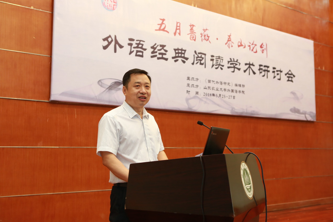 2018年5月25日-27日,由上海交通大学《当代外语研究》主办、乐鱼网页版承办的“五月蔷薇·泰山论剑—外语经典阅读乐鱼网页版研讨会”在我校隆重举行。张然副校长、《当代外语研究》主编、上海交通大学杨枫教授、复旦大学外国语言文学学院院长曲卫国教授、中国人民大学“杰出学者”和特聘教授郭英剑、上海师范大学国家重点学科比较文学与世界文学学科带头人朱振武教授、国际期刊Journal of Second Language Studies (with John Benjamins)执行主编、上海交通大学吴诗玉教授等11位国内外语界知名学者做主旨报告。来自复旦、上海交大、中国人民大学及北京大学等全国各地的专家学者以及山东农业大学师生代表共计200余人参加了会议。