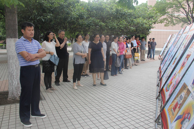 为深入学习贯彻党的十九大精神,加强反腐倡廉宣传教育,2018年5月17日下午4:30,乐鱼(中国)官方党委组织全体党员在文理大楼前参观“八项规定”警示教育漫画展。