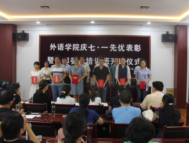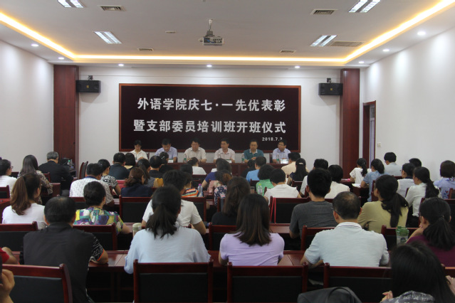 7月3日,乐鱼(中国)官方举行庆七一先优表彰暨党支部委员培训班开班仪式。学校党委副书记杨天梅,学校办公室主任李勇出席仪式。外语学院班子成员,各系室主任、副主任、各专业主任、全体辅导员、学院办公室全体人员和全体党员参加仪式。