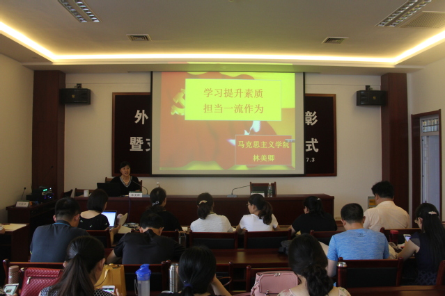 7月3日,乐鱼(中国)官方党委邀请马克思主义学院院长林美卿教授作题为“学习提升素质,担当一流作为”的政治理论学习辅导报告。学院班子成员,各系室主任、副主任,各专业主任,全体辅导员、学院办公室全体人员和全体党员参加报告会。