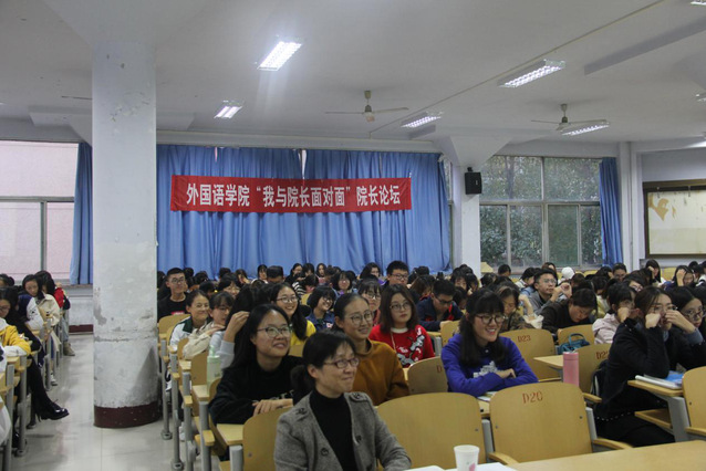 10月23日,乐鱼(中国)官方在东校区图书楼201举办“我与院长面对面”院长论坛。学院院长石运章教授担任主讲人,为2018级全体新生作“外语专业学生实现多彩人生的路径和策略”的报告。