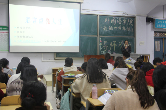 翟红华以“语言点亮人生”为主题,结合个人成长、成功经历中的一个个小故事,以“语言”为关键词,串联起了整场报告。从初识语言、语言学习、语言研究到语言学习心得4个方面,深入浅出、循循善诱地教育学生语言学习更需要刻苦的努力、坚强的毅力和日复一日的积累,引导学生语言学习要肯吃苦、有耐力、有追求,要树立目标、付诸行动、持之以恒,鼓励学生完成从被动学习到主动学习、再到研究导向学习的转变过程,只有这样,才能最终实现让语言改变、点亮自己的人生,成就优秀的自己。