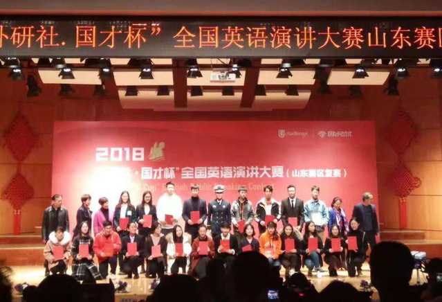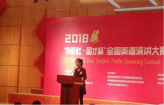 近日,由山东省教育厅和外语教学研究出版社主办的 2018“外研社·国才杯”演讲大赛(山东赛区复赛)于烟台大学落下帷幕,外语学院学生吴佳艺以其出色表现荣获优胜奖。