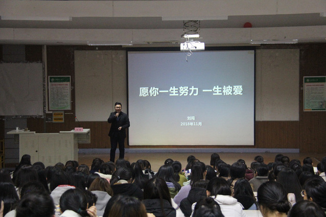 11月12日,乐鱼(中国)官方在东校区举办“我与创业面对面”校友论坛。学院特邀优秀校友刘闯为2018级全体新生作“愿你一生努力,一生被爱”主题创业心得分享。