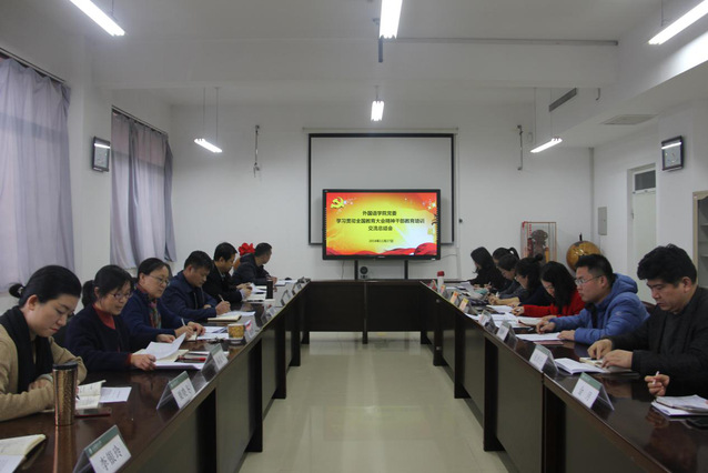 11月27日,外语学院党委组织学院班子成员、党委委员、支部书记和党员代表召开学习贯彻全国教育大会精神干部教育培训交流总结会,就深入学习贯彻全国教育大会精神进行专题交流总结。会议由学院党委副书记孙慧敏主持。