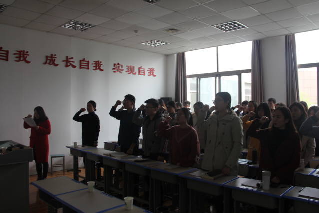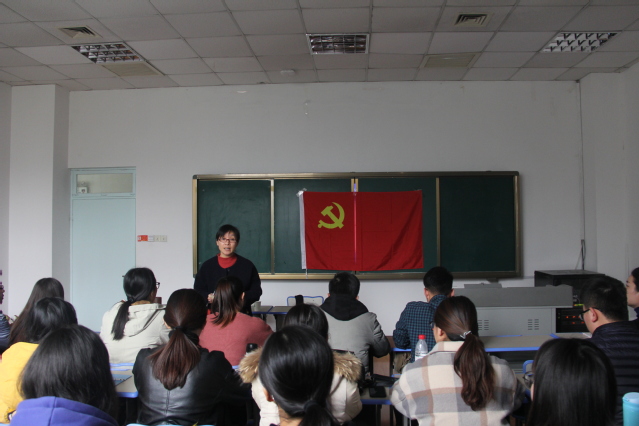 11月29日,外语学院在文理大楼201举办2018年新党员入党宣誓仪式,学院学生党支部全体党员参加仪式。