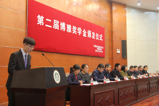 12月7日,学校颁发第二届博雅奖学金,乐鱼(中国)官方陈龙展等10名学生获得奖励。副校长张然出席颁奖仪式并讲话,勉励青年学生刻苦学习、勇于担当,胸怀远志、奋力拼搏,在实现中国梦、农大梦的历程中成就自己的青春梦想。我校乐鱼(中国)官方优秀校友、青岛沃利通进出口有限公司总经理张贺为获奖学生代表颁奖。