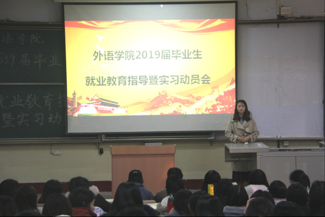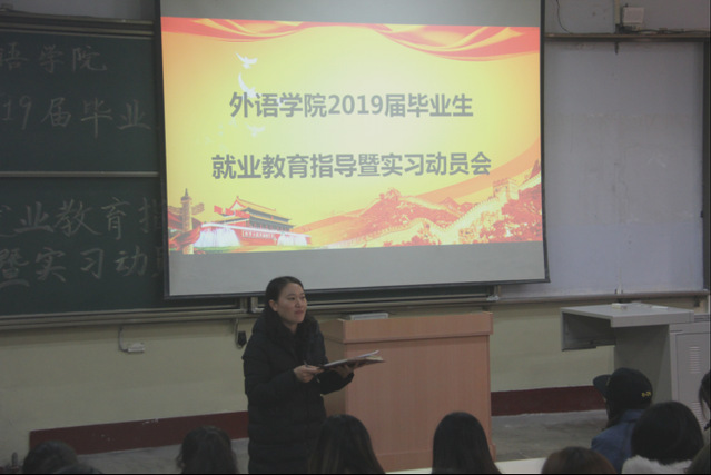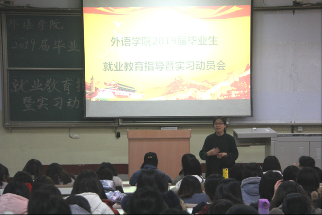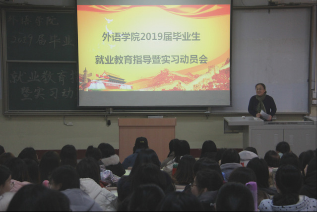 12月25日,乐鱼(中国)官方在北校区教学楼举办2019届毕业生就业教育指导暨实习动员会。学院教学和学生工作负责人,辅导员及2015级全体学生参加动员会。