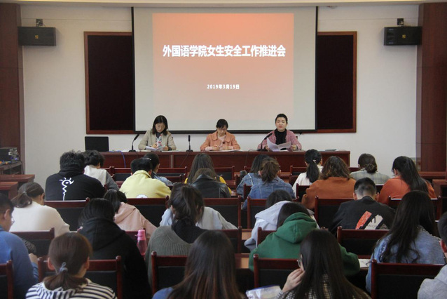 3月19日,外语学院于文理大楼211召开女生安全工作推进会。学院学生工作负责人、辅导员和全体学生干部参加会议。
