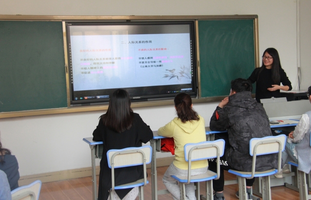 贺荣珍老师以“人际交往”为主题,就人际关系的定义、作用、建立与发展过程、人际吸引4个方面展开讲述。讲座以小组讨论的形式进行,在提问和讨论中引导学生开动脑筋,思考人际关系中存在的问题。别开生面的讨论后,贺荣珍就学生问题进行一一解答,引导学生提出合适的解决方法,让学生懂得如何更好地建立良好人际关系,以此促进身心健康发展。同学们积极参与小组讨论与情景演绎,在热烈的氛围中收获了知识与快乐。