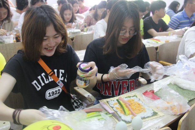 5月18日,外语学院于东校区图书楼202举办寿司制作大赛。来自6学院的34支队伍参加比赛。