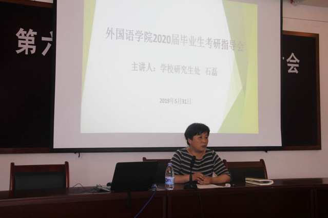 5月31日,外语学院于本部文理大楼211举办2020届毕业生考研指导会,邀请学校研究生处石磊副处长作考研指导,学院学生工作负责人、辅导员和2016级考研学生参加指导会。