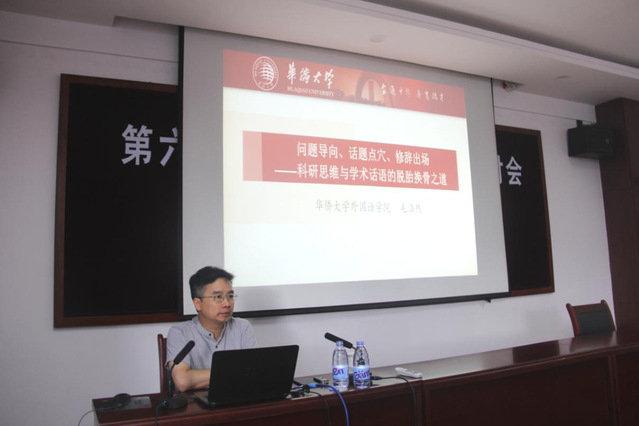 6月24日,受外语学院邀请,华侨大学毛浩然教授来校作题为“问题导向、话题点穴、修辞出场——科研思维与乐鱼网页版话语的脱胎换骨之通”乐鱼网页版报告,学院全体教师参加报告会。