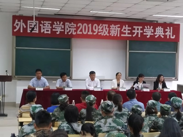 9月12日,外语学院于南校区教学楼N201举办2019级新生开学典礼,学院班子、各系主任、专业主任、班主任、外籍教师代表、辅导员和全体2019级新生参加典礼。