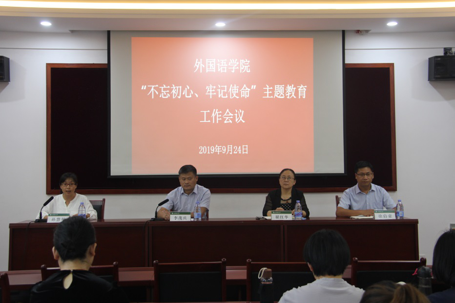 9月24日,外语学院党委在文理大楼211召开“不忘初心、牢记使命”主题教育工作会议,全面推进主题教育开展。学院班子、各支部书记、各系室主任副主任和全体教职工党员参加会议。