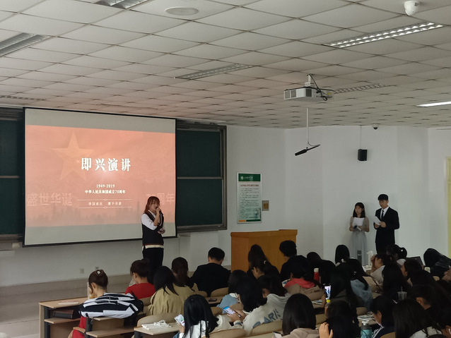 10月12日,外语学院于南校区综合楼N104举办“我和我的祖国”新生演讲比赛,2019级全体新生参加活动。