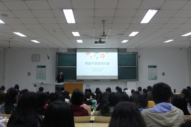 10月30日,外语学院在南校区综合楼N402举办学生干部培训会,学院学生工作负责人,全体辅导员和2019级全体学生干部参加培训会。