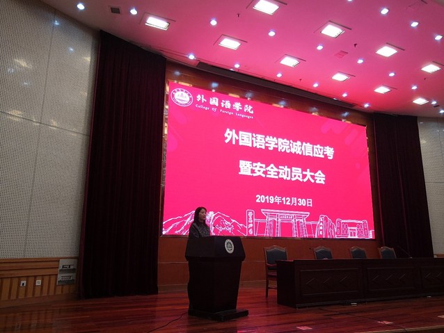近日,外语学院以年级为单位,分校区召开诚信应考动员大会,辅导员和各年级学生参加动员会。