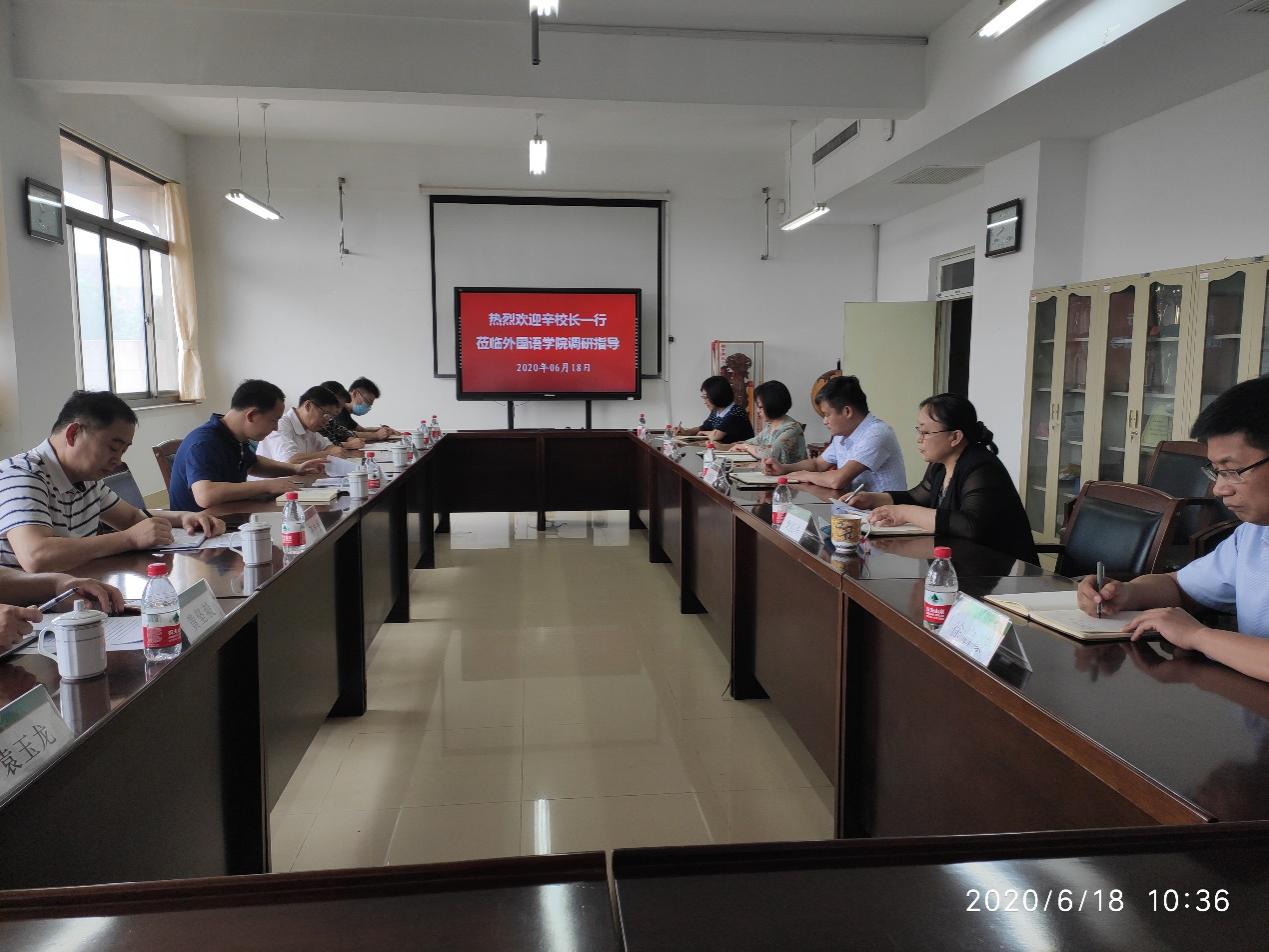 6月18日,学校党委常委、副校长辛杰和教务处负责人一行7人来外语学院调研指导工作,学院全体班子成员参加调研座谈。