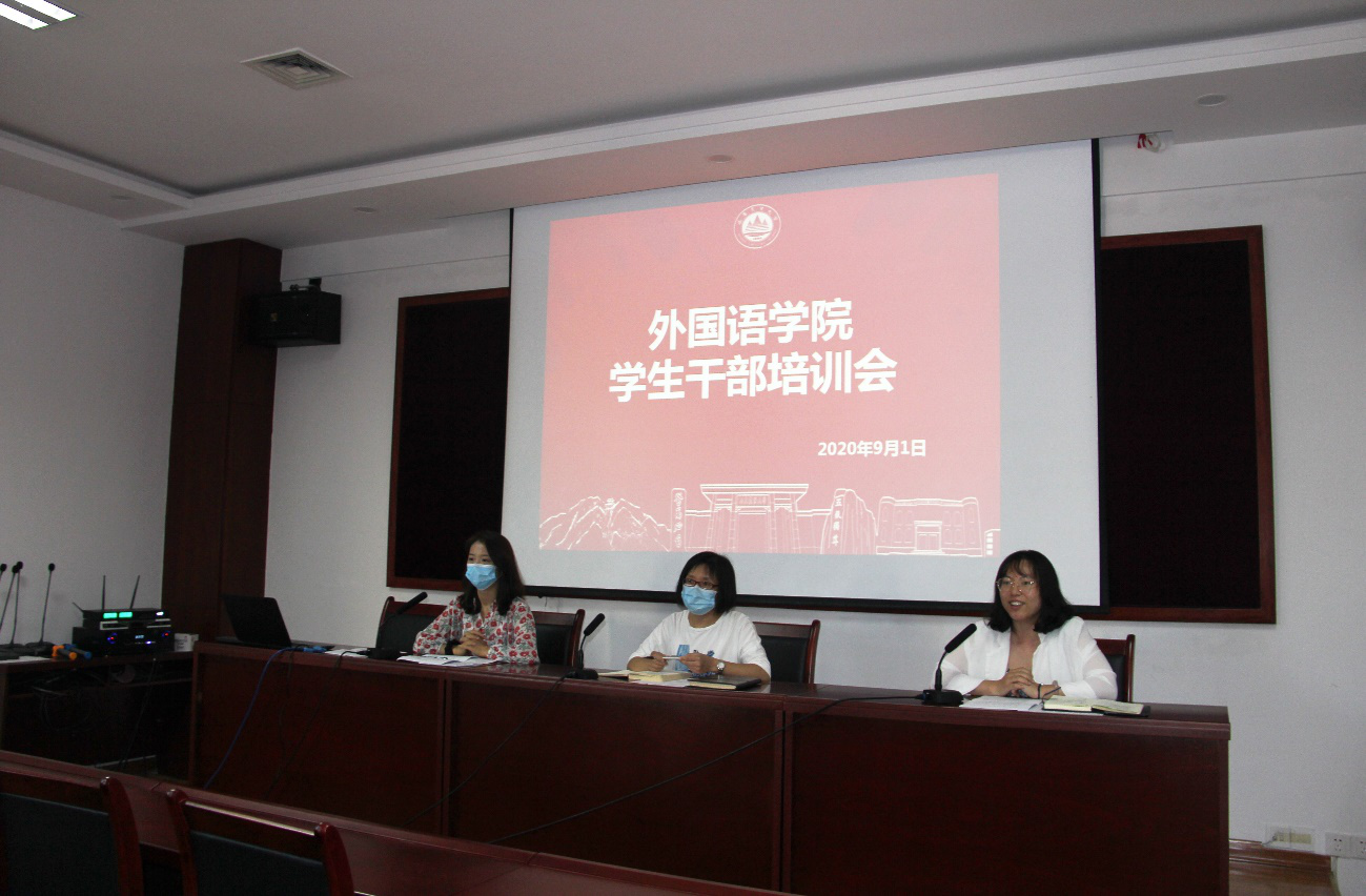 9月1日,外语学院于文理大楼211召开新学期学生干部培训会,学院学生工作负责人及全体辅导员做新学期工作安排,全体学生干部参加培训会。