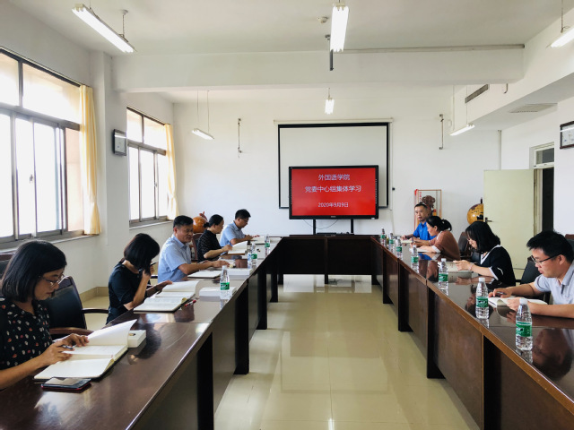 9月9日,外语学院党委中心组召开专题会议,深入学习《习近平总书记教育重要论述讲义》和《习近平谈治国理政》第三卷,学院班子成员、党委委员和各党支部书记参加会议。