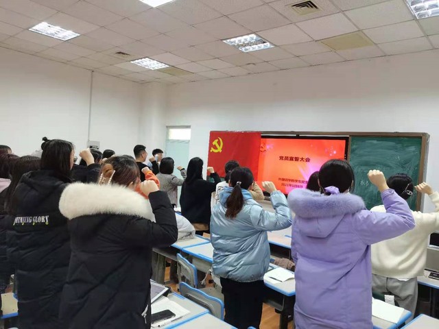 根据学校要求,外语学院党委组织各支部召开组织生活会,开展民主评议党员,各支部全体党员参加会议。 学院教工第一、第二党支部于1月5日,学生党支部于1月8日,分别召开组织生活会,开展民主评议党员。各支部按照要求,在认真组织学习和深入查摆问题基础上,召开组织生活会严肃开展批评和自我批评,开展党员民主评议。 会前,学院党委高度重视,精心制定工作方案,组织各支部严格程序,依据规定的方法步骤,认真完成相关准备工作。会上,学院党委为每个支部指派1名党委委员担任督导员,全程指导、参加支委会和党员大会并进行点评。学院班子成员以普通党员身份参加所在支部的组织生活会,并带头在会上开展批评和自我批评,为其他党员做出示范。 学院党委书记李茂兵参加教工二支部会议并点评,他向全体党员提出了4点要求。一是提高学习能力,要在加强理论学习的同时还要加强个人业务学习。二是强化党性观念,严格要求自己,充分发挥党员教师的先锋模范作用。三是在查找问题的基础上,要认真落实,切实整改,以更好提升更快进步。四是支部委员要率先垂范,团结一心,加强学习研究,带领支部工作再上一个新台阶。 学院院长翟红华在参加教工一支部会议点评时,充分肯定大家一年来的工作成果,同时希望党员继续发挥好模范带头作用,助力学院在新的一年里取得更大的发展成就。 学院党委副书记孙慧敏参加学生支部会议,点评时她重点就学生党员、学生党建和学生工作存在的问题和下一步努力方向作了强调。要求党员要有党员样子,要求大家结合自身实际、年级特点发挥先锋模范带头作用。会前,支部举行入党宣誓仪式,重温入党誓词。