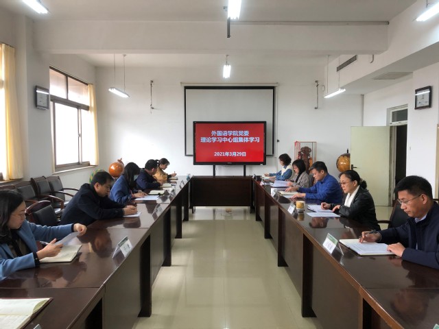 3月29日,外语学院于文理大楼321组织党委理论学习中心组集体学习,学院党委委员、党支部书记和全体辅导员参加学习。
