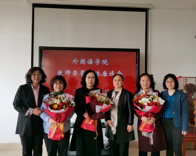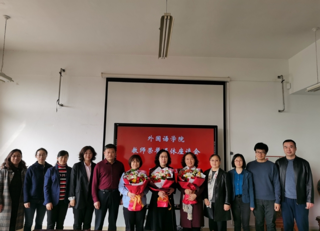 3月31日,外语学院在文理大楼321为曲小梅、庄淑霞、李方敏举办荣誉退休座谈会,学院班子成员,相关系室主任和专业主任参加会议。