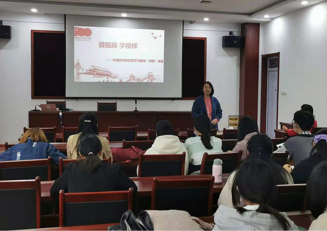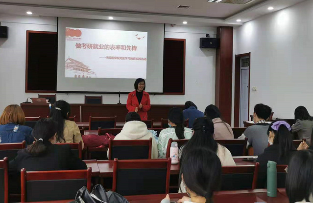 4月26日,外语学院学生党支部在文理大楼211对毕业生党员“做考研就业的表率和先锋”党史学习实践活动再推进,学生党支部教师和毕业生党员参加活动。