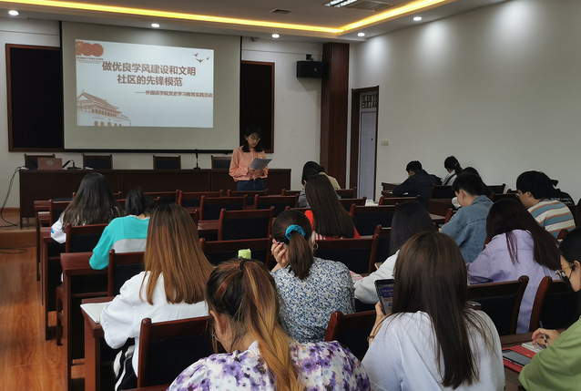 5月11日,外语学院在文理大楼211组织2018级学生党员开展“做学风建设的榜样和楷模”党史学习教育实践活动,重点推进低年级学生党员在文明社区建设中当先锋、做楷模,发挥先锋模范作用工作,全体辅导员和2018级学生党员参加活动。