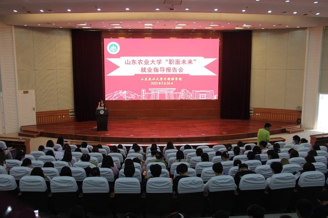 5月26日,外语学院在文理大楼报告厅举办“职面未来”就业指导报告会。邀请临沂新概念集团董事长李厚伟担任主讲人,学院学生工作负责人、全体辅导员、外语学院2019、2020级学生及北校区兄弟院系部分学生参加活动。