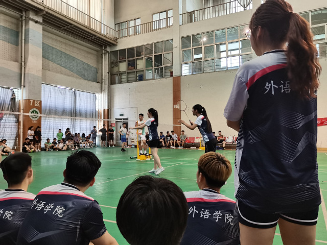 羽毛球联赛设男子单打、女子单打、男子双打、女子双打和混合双打五个项目。比赛中,我院结合选手各自特点,组织参赛选手组建最优双打项目组合,既明确分工又团结合作,在单打、双打中和其他参赛队伍进行激烈角逐。他们不服输、不言败,不抛弃、不放弃,灵活运用扣杀、跟进、扑扣等各种技术,将各路球技表现得淋漓尽致,现场气氛紧张热烈,欢呼声、喝彩声此起彼伏。最终,由朱钊龙、李梦翔、赵心睿、刘泽涛、马小丽、马明秀、郭一晨、宗玥彤、黄楚枝和李长昊组成的外语学院羽毛球队在乙组10支队伍中脱颖而出,一举获得乙组第一名的优异成绩。