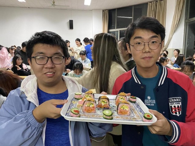 10月10日,外语学院在岱宗校区5N201举办寿司制作大赛,2019级、2020级和2021级部分学生参加比赛。