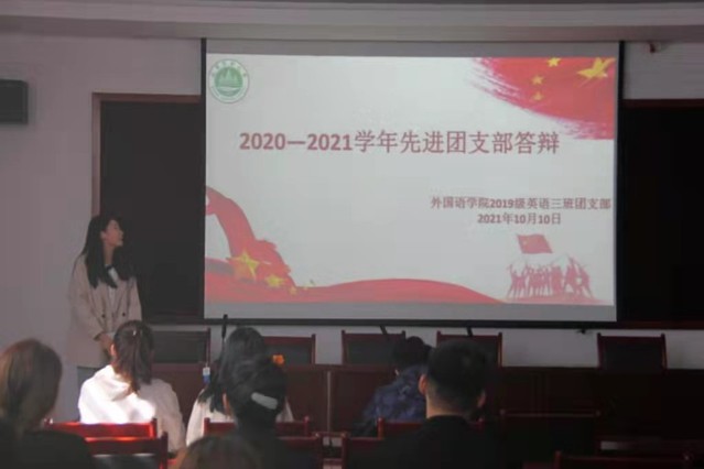 10月10日,外语学院在文理大楼211举办先进团支部答辩活动,辅导员、2019级、2020级团支部书记和学生代表参加活动。