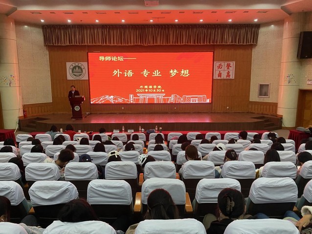 10月30日,外语学院在泮河校区图信楼报告厅举办导师论坛,学院教授委员会主任石运章教授作报告,学院学生工作负责人、辅导员及2021级全体新生参加活动。