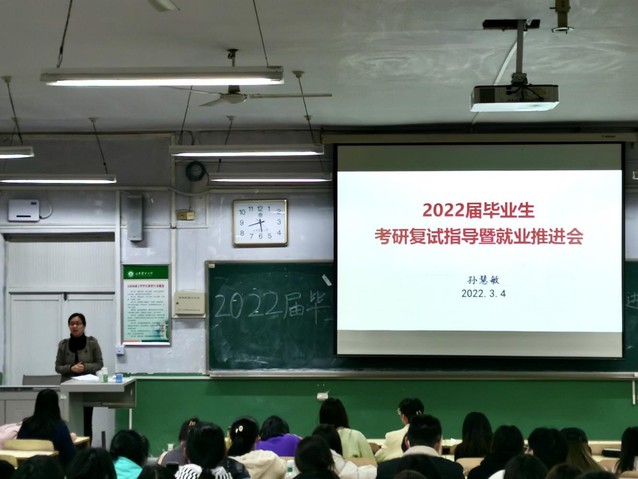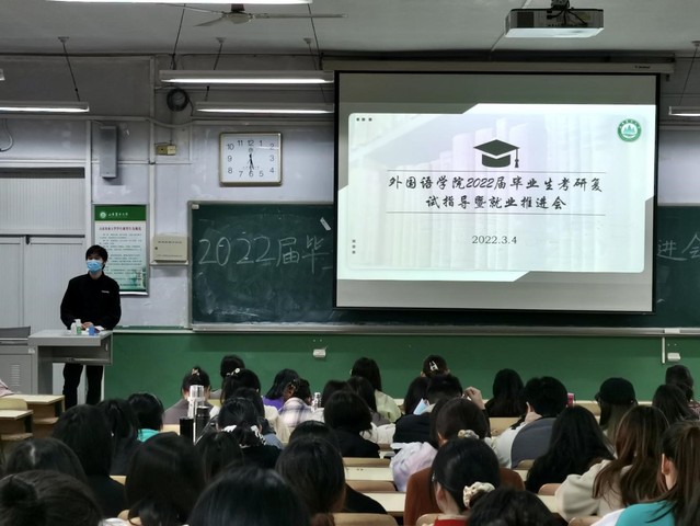 3月4日,外语学院于岱宗校区12号楼111举办2022届毕业生考研复试指导暨就业推进会,学院相关负责人及2022届全体毕业生参加会议。