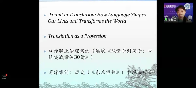 报告会围绕MTI招生与就业、跨学科备考机遇与挑战、复旦大学MTI培养模式等主题展开。九所院校报告人依次对各自院校的招生计划、人才培养模式、教学优势以及我国翻译硕士的发展与前景做详细介绍。报告中提到,当今社会的迅速发展使得翻译行业的人才缺口日益增大,社会迫切需要越来越多懂翻译、会翻译、精翻译的人才加入,翻译人才就业前景十分广阔。其中,复旦大学MTI中心主任陶友兰在报告时说,翻译专业学生更要注重知行合一,译思并举,提高翻译思辨能力、文学翻译能力以及语言基本功。并与参加线上辅导学生进行交流互动,就同学们高度关注的问题进行详细阐述、答疑解惑,对复旦大学的专业书籍、师资力量、文化底蕴等方面进行说明。
