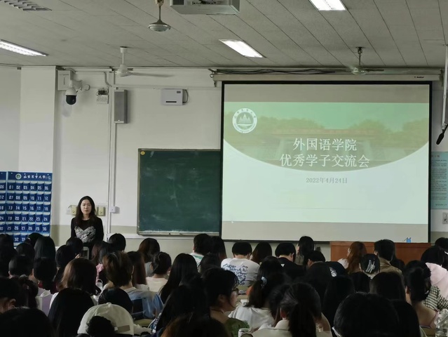 4月24日,外语学院于岱宗校区5N401教室举办优秀学子经验交流会,学院学生工作负责人,辅导员和2019级英语、日语专业全体学生参加活动。