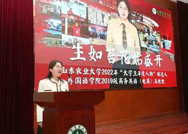 在“大学生年度人物”评选大会现场,来自各学院的19位候选人围绕乐鱼网页版科研、创新创业、技能竞赛、志愿服务等方面成果和经历进行了汇报展示和现场答辩。外语学院高忱忱以“乘风破浪行致远,生如苔花始盛开”为题,并以时间为轴,从扎根、突破、绽放三个方面讲述她的求学之路,展现了山农学子的赤子之心、鸿鹄之志,她优秀的事迹和从容自信的表现赢得了现场评委的一致好评。综合网络投票、现场投票和评选大会投票,高忱忱等10名学生获评山东农业大学2022年“大学生年度人物”荣誉称号。
