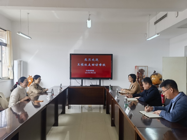 3月24日,外语学院举办王桢回访母校座谈会,欢迎2006届优秀校友王桢回访母校,学院班子成员及相关老师参加座谈会。