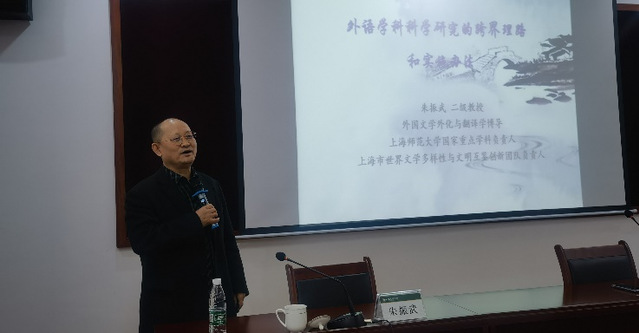 4月23日,外语学院邀请上海师范大学国家重点学科负责人、上海市世界文学多样性与文明互鉴创新团队负责人、博士生导师朱振武教授在文理大楼211作题为《外语学科的研究跨界理路和实施办法》的乐鱼网页版报告。学院党委书记李茂兵主持报告会,全体专任教师参加活动。