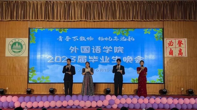 6月15日,外语学院在泮河校区第一乐鱼网页版报告厅举办“青春不散场,扬帆再远航”主题毕业晚会,欢送2023届毕业生。学院班子成员、教师代表、辅导员及全体毕业生出席晚会。