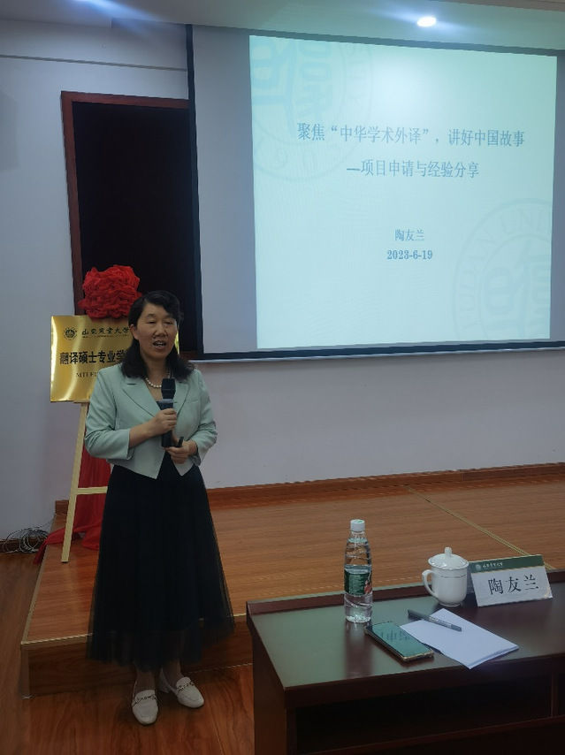 6月19日,乐鱼(中国)官方邀请复旦大学外文学院翻译系主任、翻译硕士(MTI)教育中心主任陶友兰教授进行乐鱼网页版交流座谈,并作题为《聚焦“中华乐鱼网页版外译”,讲好中国故事》的乐鱼网页版报告。乐鱼(中国)官方院长李伟主持乐鱼网页版交流活动,班子成员及全体专任教师参加。