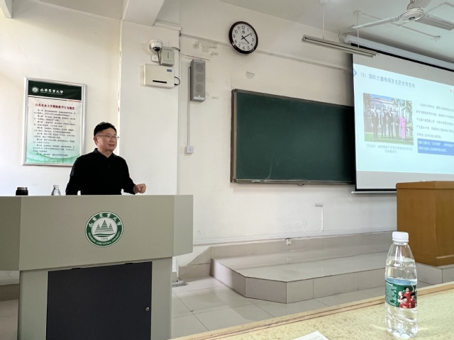 讲座上,胡化坤着眼当前形势,围绕百年未有之大变局加速演进、我国周边安全形势复杂严峻、塑造有利的和平安全环境以及敢于斗争、善于斗争、敢于胜利四个方面展开详细讲解。他以当前国际形势的基本态势为切入点,深入分析我国周边安全形势,重点阐释我国发展面临的朝核危机、南海争端等挑战,并进一步强调我国要坚持和平发展道路,坚持睦邻友好的大方向。同时,胡化坤引导学生们发扬斗争精神,敢于斗争、善于斗争、敢于胜利。